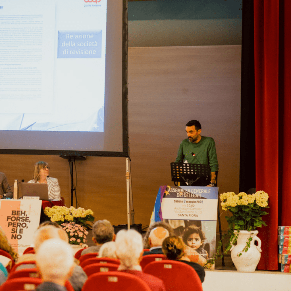 Marco Vagaggini, consigliere delegato di Coop Amiatina, si riallaccia al discorso fatto dal sindaco relativo al radicamento sul territorio evidenziando che Coop Amiatina è presente, con vari servizi oltre alla vendita di alimentari, in quelle località in cui la concorrenza non investe perché non redditizio. “Noi ci siamo per senso di responsabilità, offrendo un servizio misurato sui bisogni, attraverso anche il ruolo dei dipendenti che è strategico nell’interpretare in queste realtà l’anello di congiunzione tra la Cooperativa e i soci.” Dopo la presentazione di alcuni dati, Vagaggini conclude l’intervento ricordando che nel 2024 l’inflazione all’acquisto non è stata ribaltata sui prezzi di vendita, ma assorbita dalla cooperativa, per contenere i prezzi di vendita già aumentati per effetto di due anni di inflazione, ricordando che dal 31 marzo 2025 è stata attuata un’azione di abbassamento dei prezzi su moltissimi prodotti, in particolar modo sui beni di prima necessità.