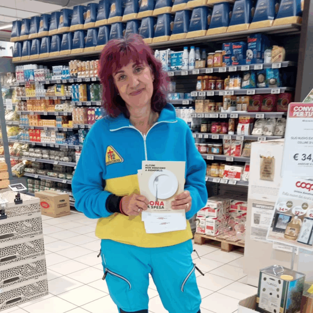 All’ingresso dei negozi vengono distribuiti a Soci e clienti i volantini esplicativi dove è riportato l’elenco dei prodotti a lunga conservazione come riso, pasta, farina, zucchero, carne e tonno in scatola, olio, legumi, caffè, tè, latte UHT, biscotti secchi, marmellate e miele; alimenti per l’infanzia; prodotti per l’igiene personale e della casa. Si tratta di prodotti utili e a lunga scadenza, che possono essere facilmente raccolti e suddivisi per la preparazione di pacchi e spese solidali.